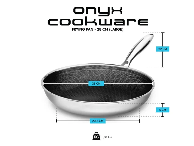 Våra stekpannor är namngivna och uppmätta i centimeter, där måttet avser diametern från de övre inre kanterna.